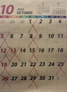 今月の定休日です.